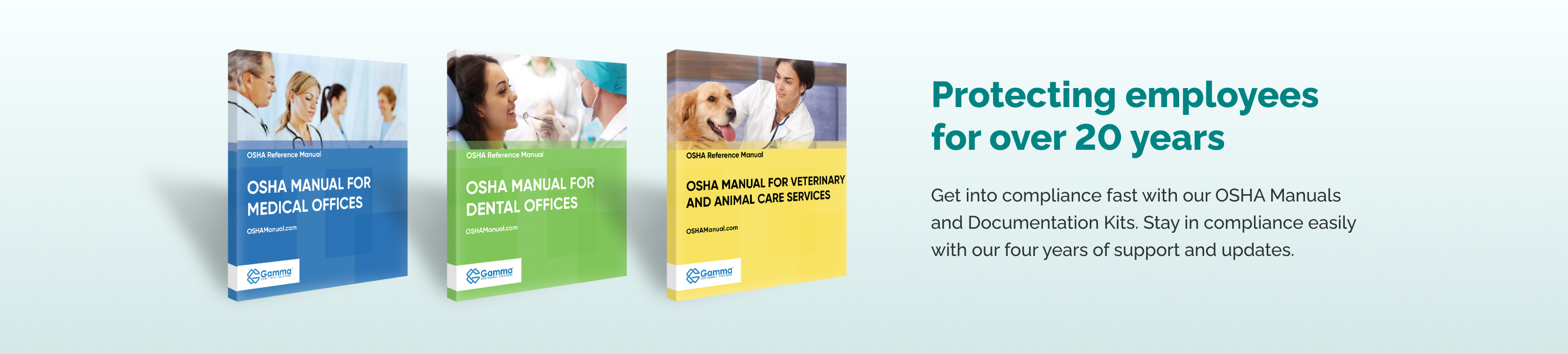 You can guarantee that your practice meets regulatory standards with OSHA Compliance Solutions and training. Tailored for medical, dental, and veterinary offices, our comprehensive manuals simplify compliance with the latest OSHA guidelines. Stay ahead of regulations with updates and specialized manuals for your location and industry. Safeguard your workplace and meet legal obligations effortlessly. You can protect your practice today with OSHA compliance solutions from Gamma Compliance.